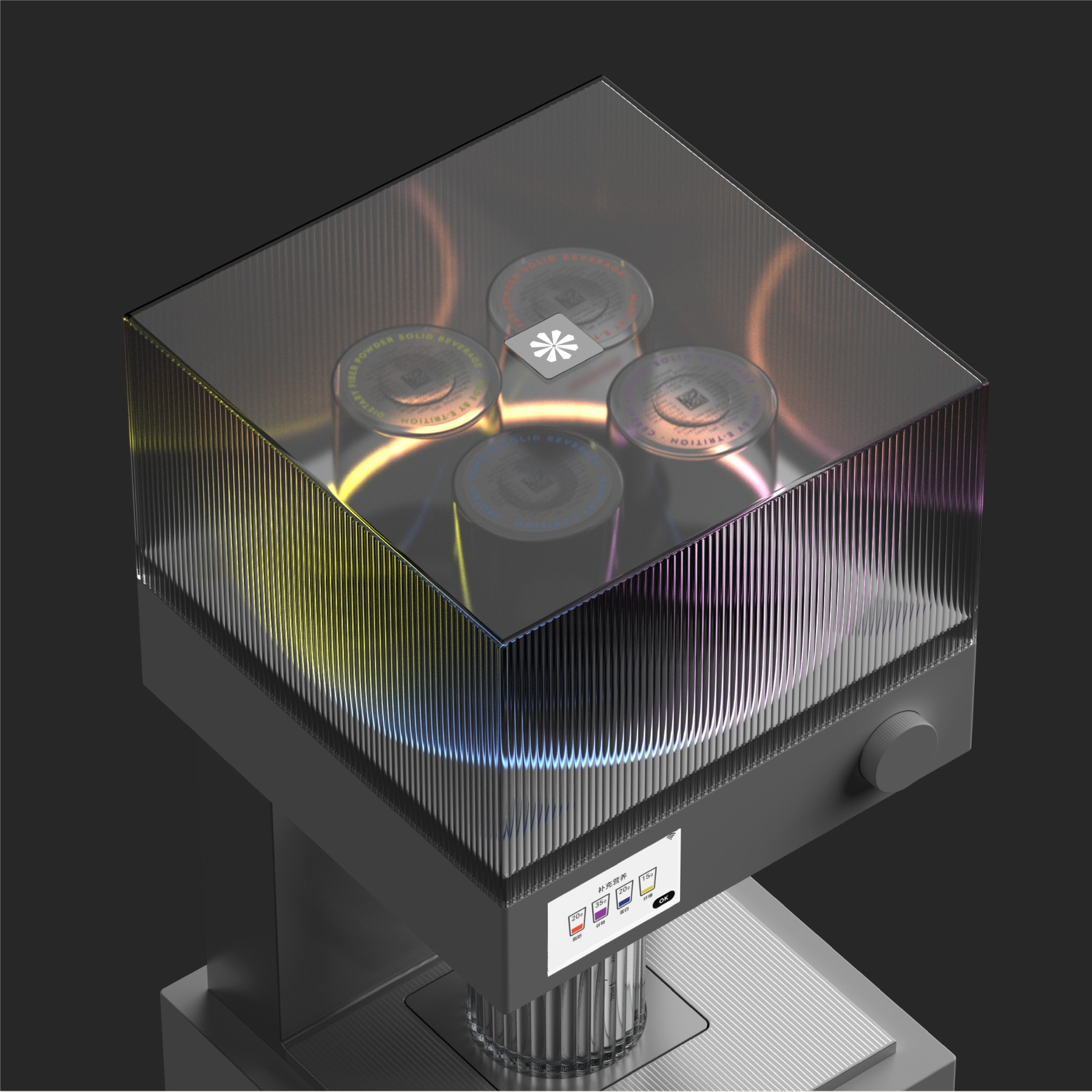 개인 맞춤형 영양제 파우더 디스펜서는 사용자의 상태와 필요에 따라 여러 영양소를 최적의 비율로 배합해 제공하는 제품이다.