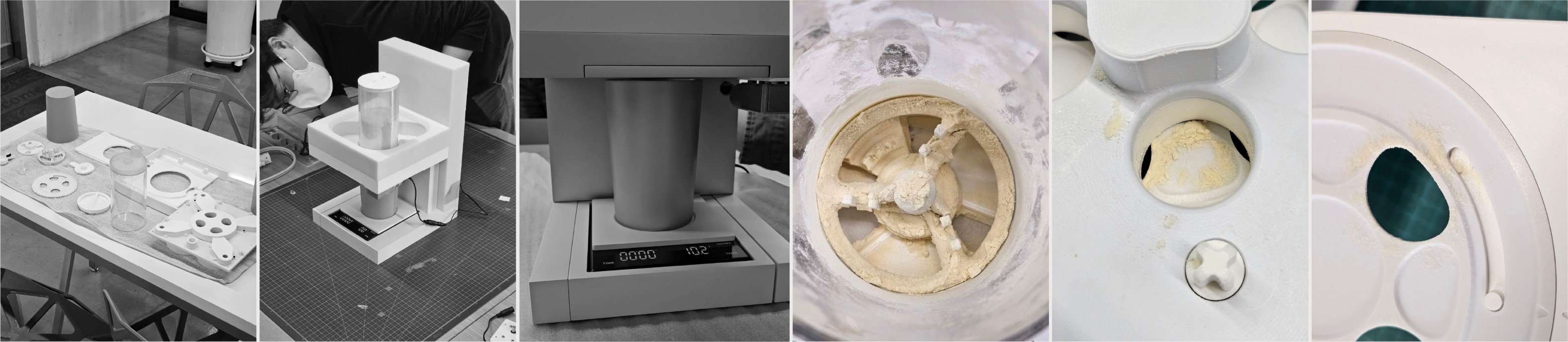 실험 및 연구 결과가 반영된 설계 구조를 적용한 스터디 목업과 디자인 목업을 제작하여 추가 테스트를 진행했다. 사용 후 진동에 의한 잔여물, 카트리지 구조에 따른 파우더의 추출량과 속도 등을 체크하며 최적의 방향으로 문제를 해결할 수 있었고, 이를 토대로 디자인을 발전시켰다.