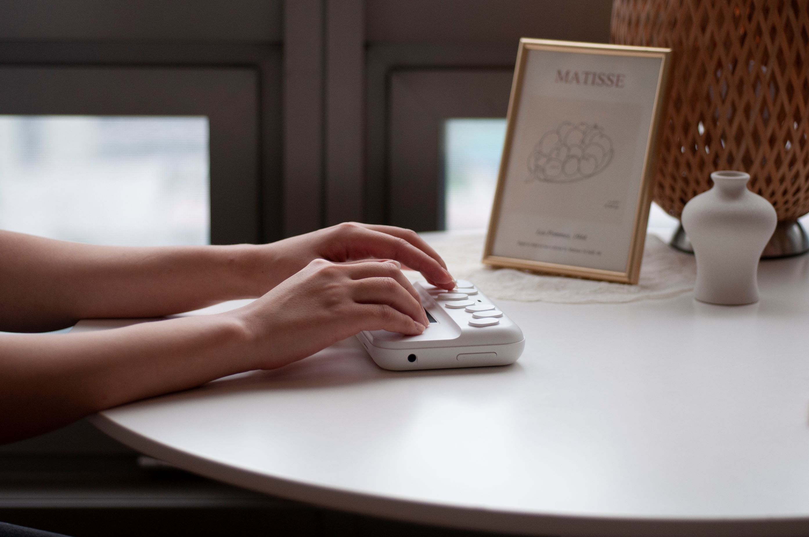 점자를 익히는 시각장애인을 위한 점자 교육 디바이스이다. 시각장애인의 관점과 경험, 그리고 점자를 익히는 과정에서 느낄 수 있는 요소들을 고려해 디자인에 담았다. 어지러운 인터페이스를 가진 제품을 볼 때 사용하기도 전에 어지러울 정도로 피곤을 느낀다. 점자 리더기 또한 많은 정보를 전달하는 제품으로 제품 사용 피로도가 높다는 특징이 있다. 따라서 제품을 디자인 할 때 전달하는 정보를 직관적으로 읽힐 수 있도록 정리하고, 가독성을 저해하는 촉각적 노이즈를 최적화하는 것을 중요한 지향점 중 하나로 정의해 디자인했다.